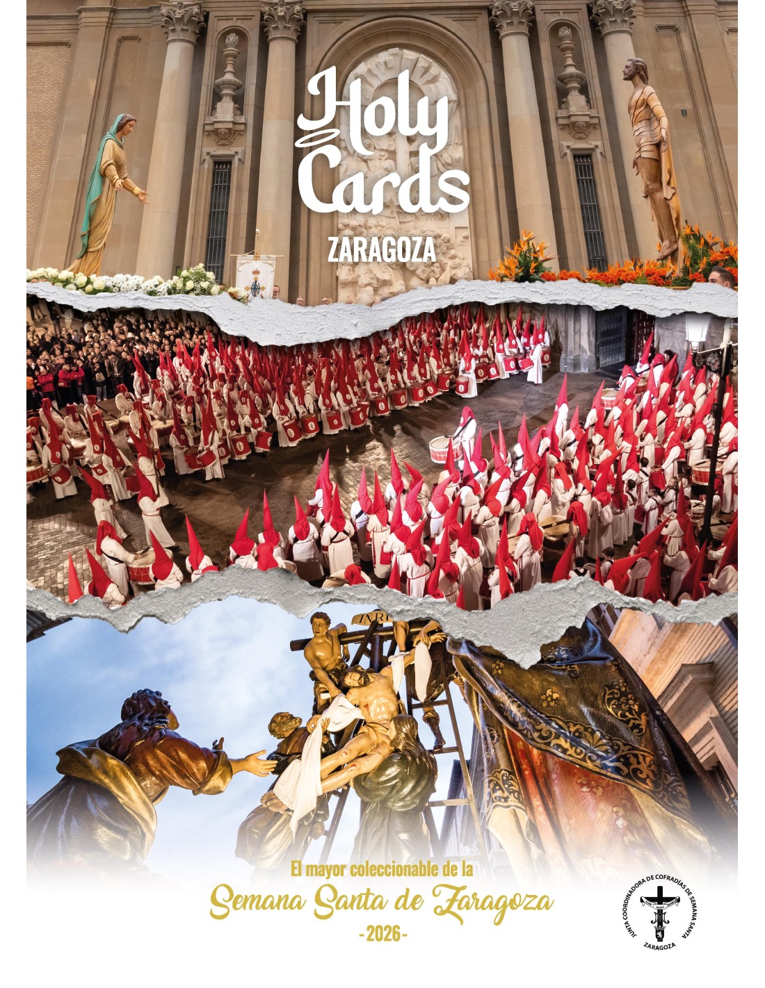 HolyCards Zaragoza 2026 es la primera edición oficial del coleccionable dedicado a la Semana Santa de Zaragoza. Contiene 54 páginas a todo color y un total de 486 cromos con secciones como Hermandades de Penitencia, Hermandades que no procesionan, Cruces In Memorian, San Cayetano, Pregón, Carteles, Patrimonio y detalles únicos de la Semana Santa de Zaragoza.