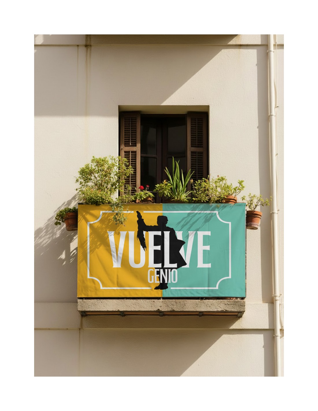 Con un diseño llamativo y un mensaje cargado de emoción, la balconera “Vuelve el genio” simboliza el regreso del duende, la creatividad y la pureza del toreo clásico. Ideal como elemento decorativo taurino, es resistente, fácil de colocar y pensada para lucir tanto en espacios exteriores como interiores.